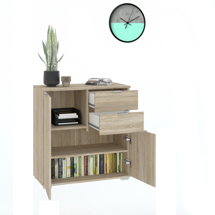 Komoda dvoudveřová se dvěma zásuvkami je vyrobena z kvalitní LTD desky v barevném provedení dub sonoma. V naší nabídce naleznete více variant nábytku této řady. Dodáváme v demontovaném stavu.CASA 85030