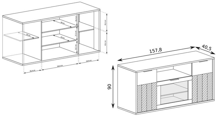 Sektor je ve stylu moderní elegance. Charakteristickým znakem nábytku je jeho stylové a elegantní zdobení na přední části.