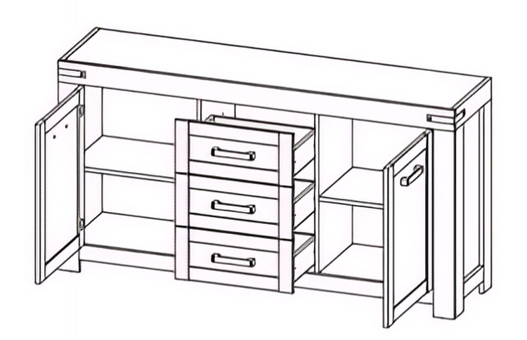 Komoda dvoudveřová se třemi zásuvkami.