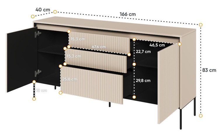 Obsahuje – 2 dvířka + 3 prostorné zásuvky.