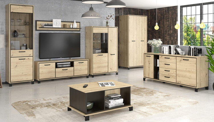 Komoda dvoudveřová se čtyřmi zásuvkami v moderním provedení dekoru přírodního dřeva. Nábytek je vyroben z kvalitní LTD desky v barevné kombinaci dub artisan/wenge tmavá. Dodáváme v demontovaném stavu.CASA 97033