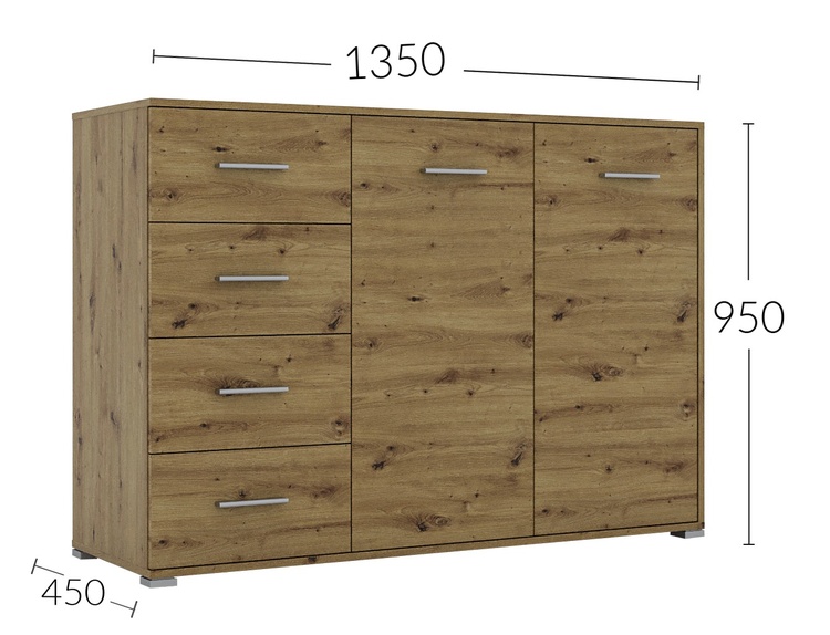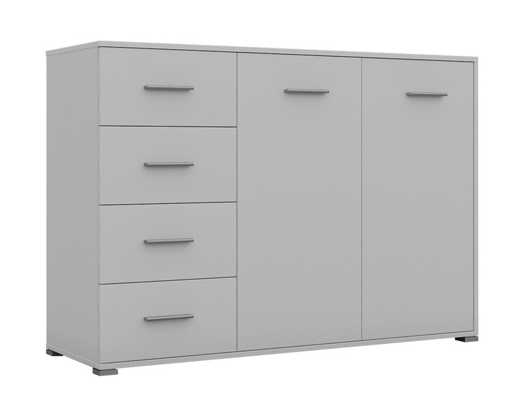 Komoda dvoudveřová se čtyřmi zásuvkami je vyrobená z kvalitní laminátové desky (odolné a ekologicky šetrné) v barevném provedení bílá mat (Nimfea alba). Kvalitní pojezdy zajišťují hladký a tichý pohyb zásuvek. Dodáváme v demontovaném stavu.CASA 83179