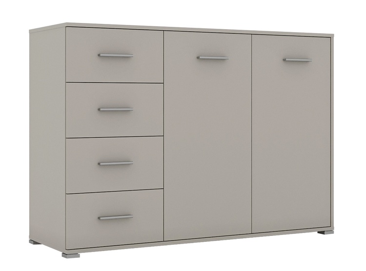 Komoda dvoudveřová se čtyřmi zásuvkami je vyrobená z kvalitní laminátové desky (odolné a ekologicky šetrné) v barevném provedení kašmír. Kvalitní pojezdy zajišťují hladký a tichý pohyb zásuvek. Dodáváme v demontovaném stavu.CASA 83179