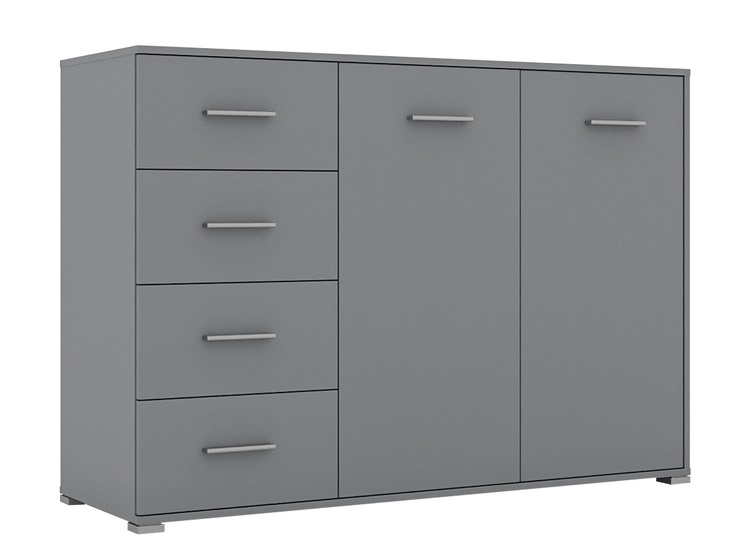 Komoda dvoudveřová se čtyřmi zásuvkami je vyrobená z kvalitní laminátové desky (odolné a ekologicky šetrné) v barevném provedení šedá. Kvalitní pojezdy zajišťují hladký a tichý pohyb zásuvek. Dodáváme v demontovaném stavu.CASA 83179