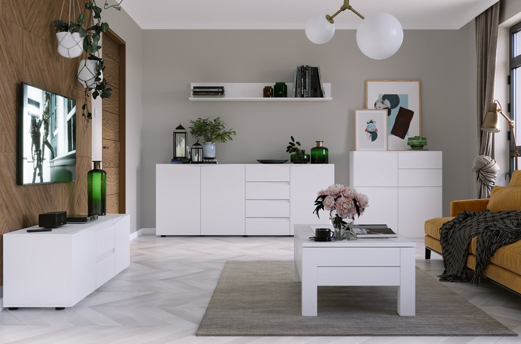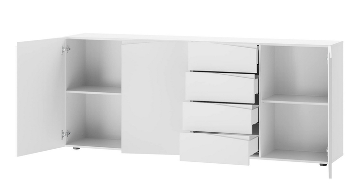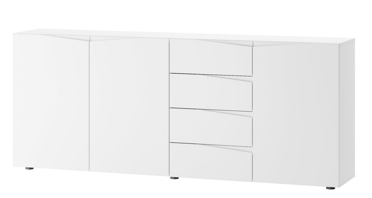 Komoda třídveřová se čtyřmi zásuvkami. Komoda je vyrobena z kvalitní LTD desky v barvě bílá mat, dvířka jsou vyrobeny z desky MDF v barvě bílá mat. Nábytek je bezúchytový, úchyty nahrazuje vyfrézování v předních dvířkách. Dodáváme v demontovaném stavu.CASA 75047
