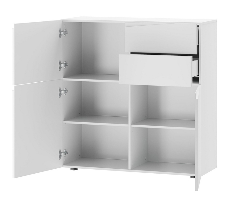 Komoda třídveřová se dvěma zásuvkami. Komoda je vyrobena z kvalitní LTD desky v barvě bílá mat, dvířka jsou vyrobeny z desky MDF v barvě bílá mat. Nábytek je bezúchytový, úchyty nahrazuje vyfrézování v předních dvířkách. Dodáváme v demontovaném stavu.CASA 75047