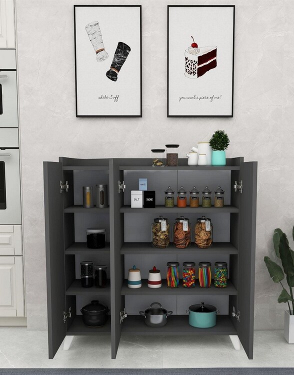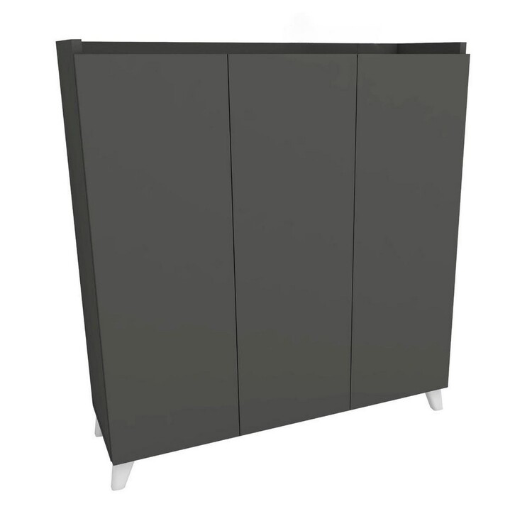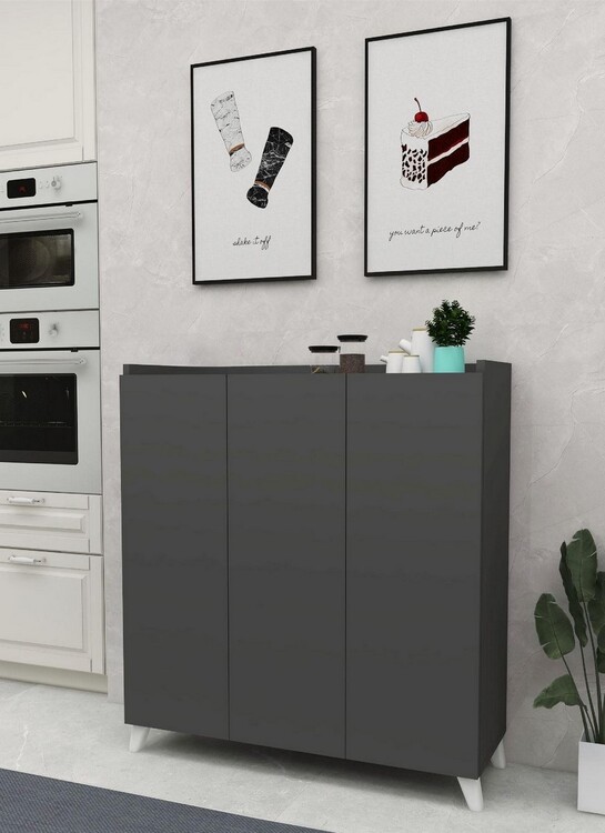Třídveřová komoda je vyrobena z kvalitní LTD desky, která je nenáročná na údržbu. Tloušťka desky – 18 mm. Uvnitř komody jsou police. Barevné provedení je antracit.Rozměry komody: