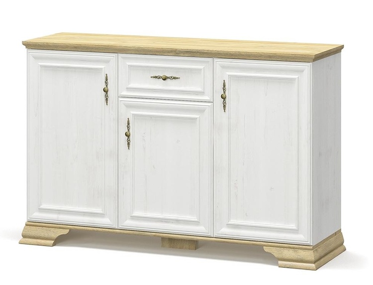 Komoda třídveřová se zásuvkou ze sektorové řady nábytku v romantickém stylu. Nábytek je vyroben z kvalitní LTD v kombinaci s MDF v barevné kombinaci borovice andersen/zlatý dub. V naší nabídce najdete další jednotlivé prvky tohoto nábytku, ze kterého si můžete zařídit obývací pokoj dle... více informací o zboží