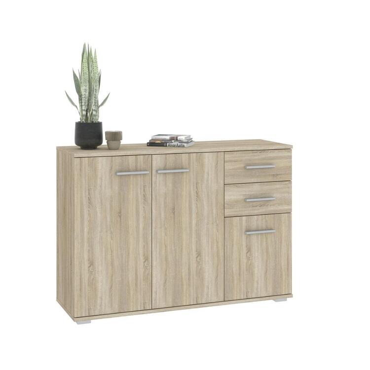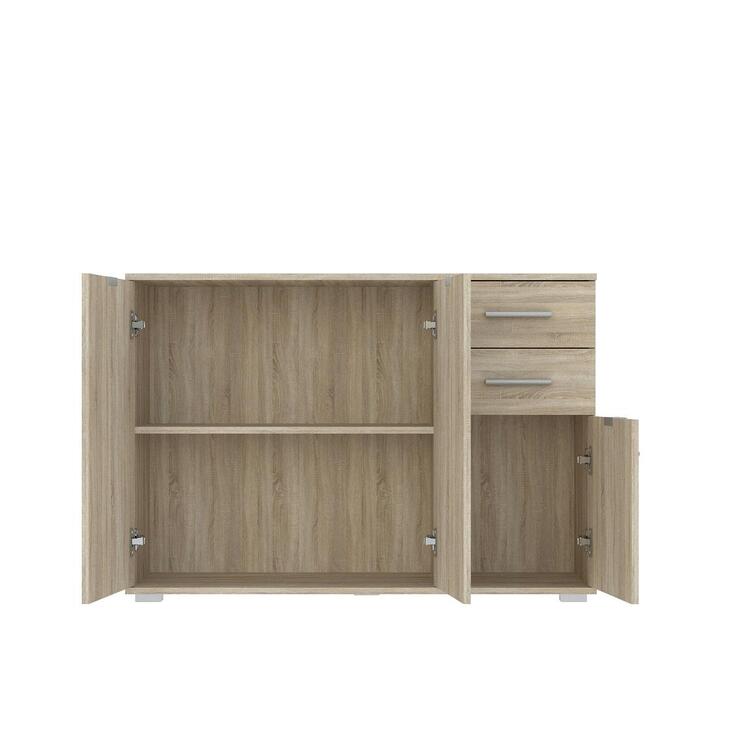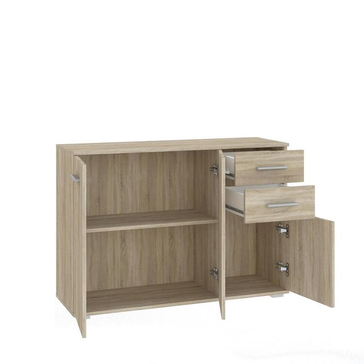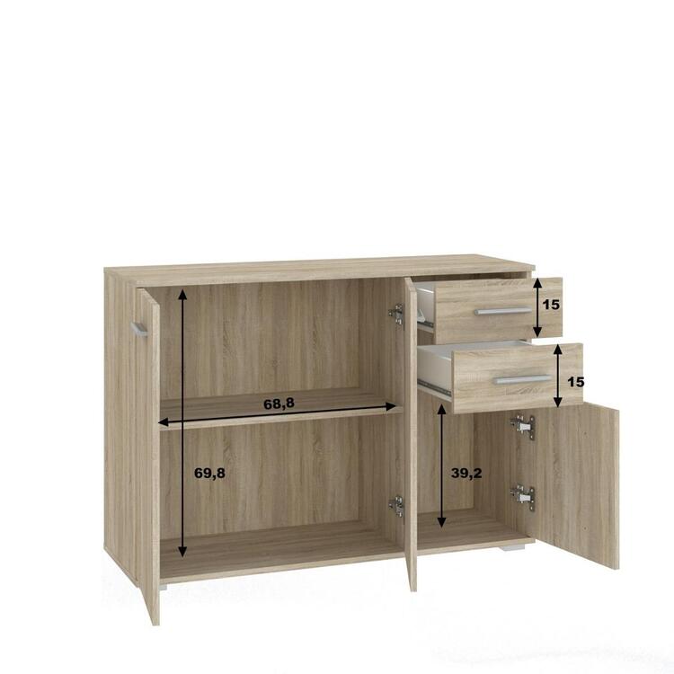 Komoda třídveřová se dvěma zásuvkami je vyrobena z kvalitní LTD desky v barevném provedení dub sonoma. V naší nabídce naleznete více variant nábytku této řady. Dodáváme v demontovaném stavu.CASA 85030