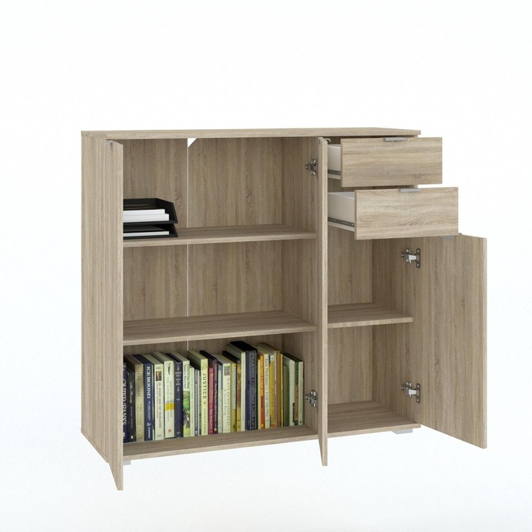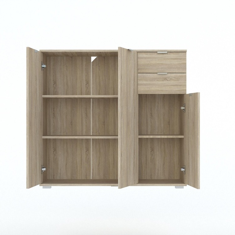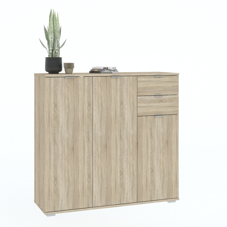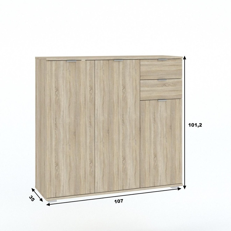 Komoda třídveřová vysoká se dvěma zásuvkami je vyrobena z kvalitní LTD desky v barevném provedení dub sonoma. V naší nabídce naleznete více variant nábytku této řady. Dodáváme v demontovaném stavu.CASA 85030
