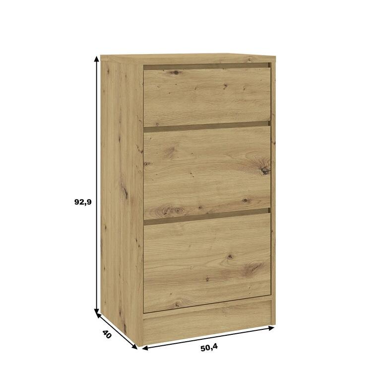 Komoda se třemi zásuvkami je vyrobena z kvalitní LTD v barevném provedení dub artisan. Dodáváme v demontovaném stavu.CASA 85019