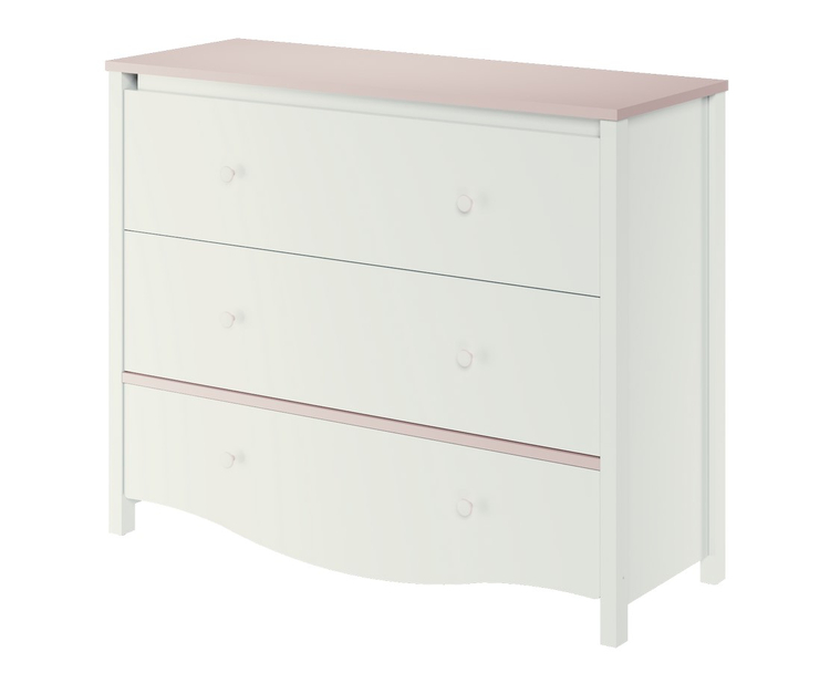 Komoda MI-16. Komoda má 3 zásuvky. Nábytek je vyrobený z kvalitního lamina ohraničené ABS páskou, dolní část velké zásuvky je vyřezaná do obloučku. Komoda je v barvě bílé a růžové. V naší nabídce najdete mnoho dalších prvků této sestavy a tento široký výběr Vám zaručí sestavit si útulný dětský pokoj. Dodáváme v demontovaném stavu.CASA 73010