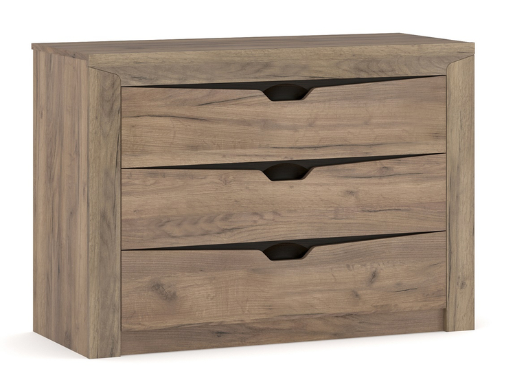 Komoda se třemi zásuvkami v elegantním provedení dokonale doplní váš interiér. Komoda je vyrobena z kvalitní MDF desky v kombinaci barev wenge tmavý/dub tabaco. Úchyty jsou nahrazeny netradičním vyfrézováním. Nabídka komponentů této sektorové řady umožňuje sestavit si nábytek do ložnice dle... více informací o zboží
