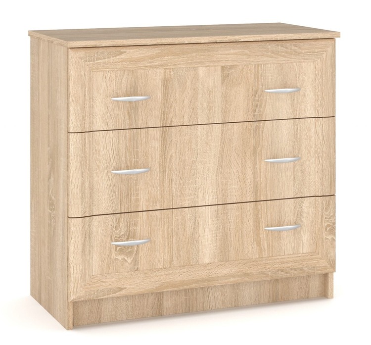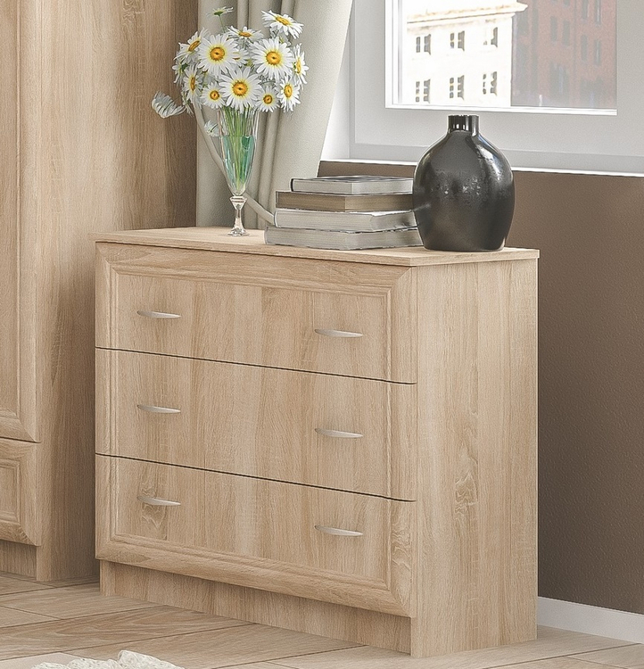 Komoda se 3 zásuvkami z ložnicové řady. Jemné orámování na čele nábytku dodá Vašemu interiéru eleganci. Komoda je vyrobena z kvalitní LTD desky s MDF prvky v barvě dub sonoma. Nabídka komponentů této sektorové řady umožňuje sestavit si nábytek do ložnice nebo studentského pokoje dle vlastních představ. Dodáváme v demontovaném stavu.CASA 97005