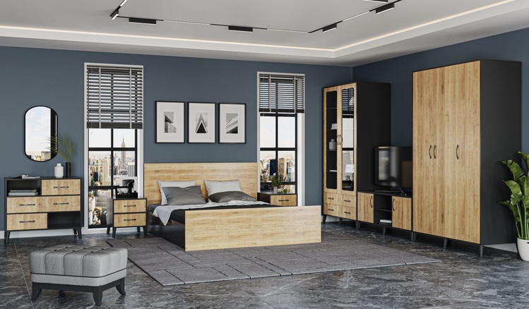 Komoda se třemi zásuvkami, korpus je vyroben z LTD desky odolné vůči poškrábání v barvě antracit, čela zásuvek jsou vyrobeny z desky MDF v barvě dub wotan. Zásuvky jsou vybaveny teleskopickými výsuvy. Úchyty a nožky jsou v barvě antracit. Dodáváme v demontovaném stavu.CASA 19021