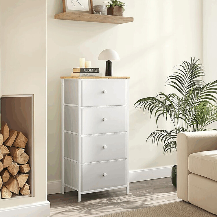 Komoda AUK-E1031 WT značky Autronic nabízí praktické řešení úložného prostoru v kompaktním provedení o rozměrech 45×30×92 cm. Je vyrobena z MDF desek s matnou povrchovou úpravou v dekoru dub, která dodává nábytku přírodní vzhled a snadnou údržbu. Stabilní kovová podnož zajišťuje pevnost a dlouhou životnost, zatímco čtyři látkové zásuvky z netkané textilie poskytují lehký a flexibilní úložný prostor vhodný pro odkládání drobností i oblečení. Komoda je navíc vybavena rozkládacím mechanismem, který umožňuje snadné rozšíření úložné kapacity podle potřeby. Díky svému jednoduchému designu a neutrálním barvám se hodí do různých interiérů, kde oceníte kombinaci funkčnosti a decentního stylu.