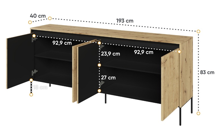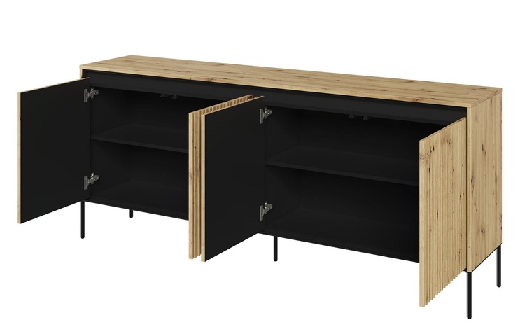 Komoda 4D nizká s LED IPOLIS dub artisan/černá