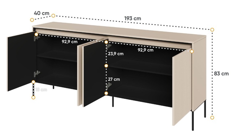 Komoda 4D nizká s LED IPOLIS písková/černá