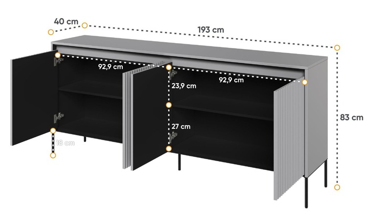 Komoda 4D nizká s LED IPOLIS šedá/černá