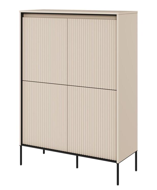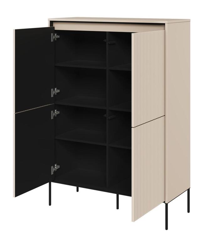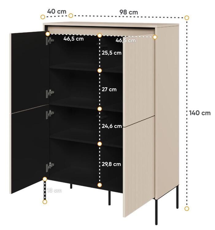 přední strana MDF 18 mm s půlválcovým frézováním, vše hraněno ABS