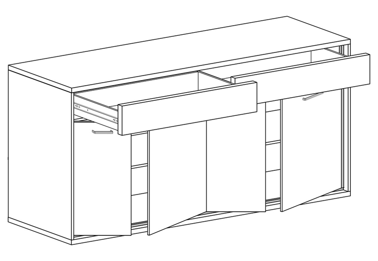 Komoda čtyřdveřová se zásuvkami v industriálním stylu v barevném provedení dub hickory, doplněno prvky v černé barvě. Nábytek je vyroben z kvalitního lamina ohraničeného ABS páskou a také je vybaven systémem tichého dovírání. Zásuvky jsou doplněny dekorační dubovou deskou a systémem push to open – otvírání zmáčknutím zásuvky. Úchyty jsou černé kovové. Dále je možné dokoupit LED dekorační pásek. Kolekce se skládá z mnoha prvků a tento široký výběr Vám zaručí sestavit si nábytek podle svých vlastních představ a přání. Dodáváme v demontovaném stavu.CASA 71027