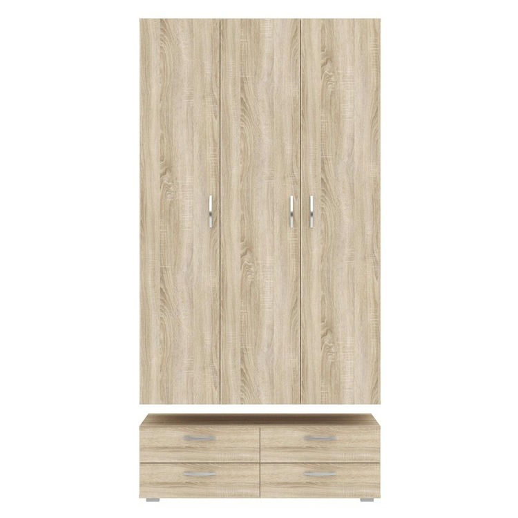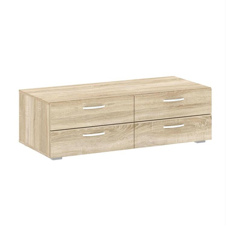 Komoda se čtyřmi zásuvkami je vyrobena z kvalitní LTD v barevném provedení dub sonoma. Ke komodě je možné dokoupit i šatní skříň, kterou pak na komodu postavíte. Dodáváme v demontovaném stavu.CASA 85040