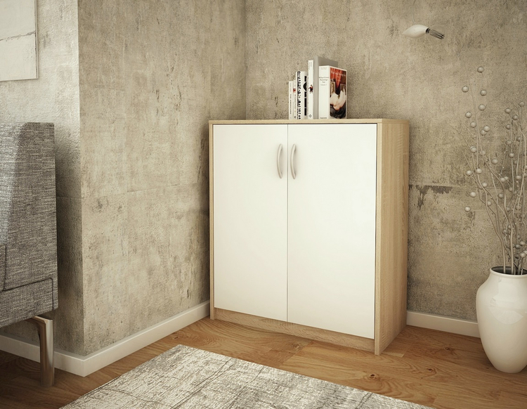 Komoda dvoudveřová v moderním provedení. Korpus v barvě dub sonoma a dvířka v barvě bílá. Lamino je odolné vůči vysokým teplotám, poškrábání a nárazům, hraněné ABS páskou. Jasně viditelná struktura dřeva. Dodáváme v demontovaném stavu.CASA 53001