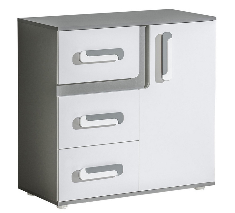 Komoda APETTITA ze sektorové řady, která se vyznačuje netradičním zpracováním barev a originalitou úchytů. Tento styl nábytku zaujme každou mladší generaci. Nábytek je vyroben z kvalitní LTD desky hraněné ABS lištou. Korpus je v barvě šedá antracit, dvířka a čela zásuvek jsou bílé matné. Úchytky jsou v barevné kombinaci antracit/bílá. Sektorový nábytek APETTITA má široký výběr prvků, který Vám zaručí sestavit si dětský nebo studentský pokoj, ložnici či kancelář podle svých potřeb, přání a představ. Dodáváme v demontovaném stavu.CASA 23001