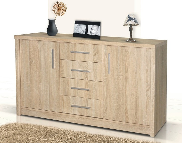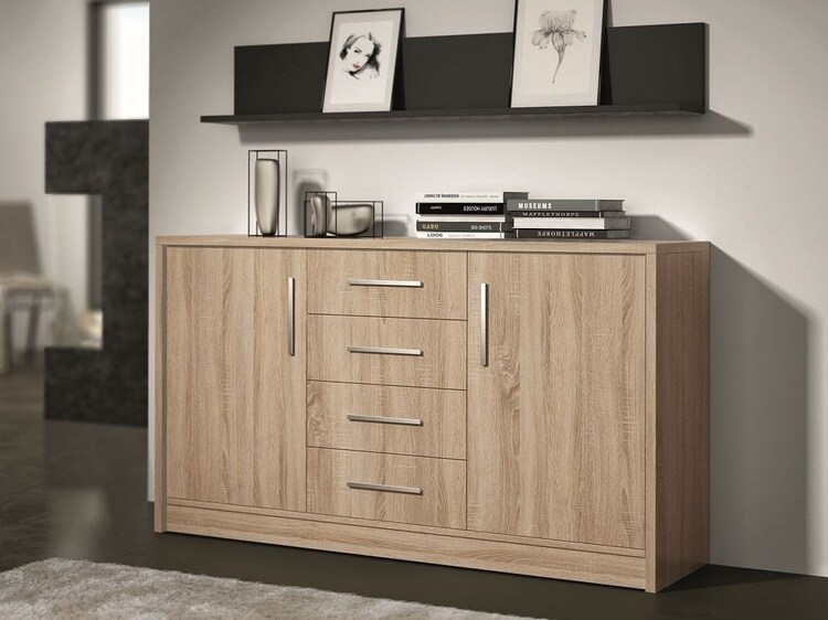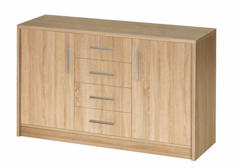 Komoda dvoudveřová se 4 zásuvkami v moderním provedení. Korpus i dvířka jsou z kvalitního LTD v barvě dub sonoma. Dodáváme v demontovaném stavu.CASA 31018