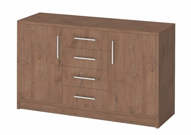 Komoda dvoudveřová se 4 zásuvkami v moderním provedení. Korpus i dvířka jsou z kvalitního LTD v barvě dub stirling. Dodáváme v demontovaném stavu.CASA 31018