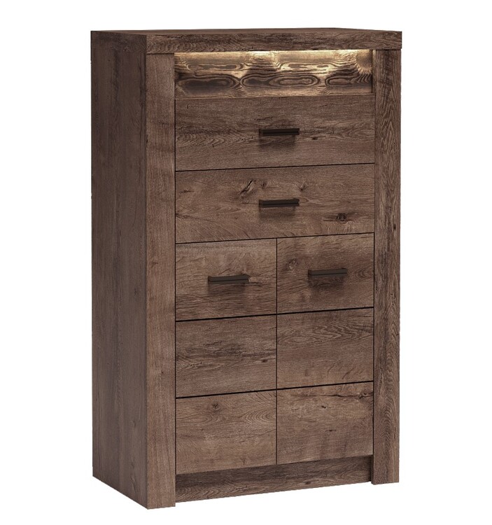 Komoda s dvířky a 2 zásuvkami. Systém je exkluzivní kolekce navržena v moderním duchu. Vsazením LED osvětlení do ozdobné rýhované lišty, které najdete v naší další nabídce k dokoupení, je zvýrazněn rustikální vzhled masivního dřeva. Celá řada se vyznačuje elegancí a jednoduchými tvary, které... více informací o zboží