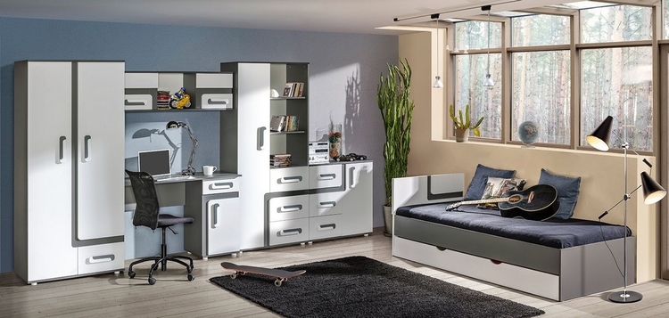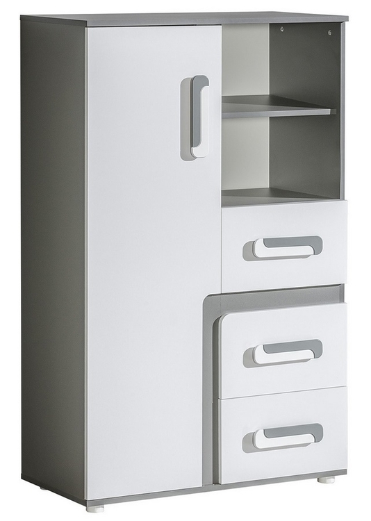 Kombinovaná komoda APETTITA ze sektorové řady, která se vyznačuje netradičním zpracováním barev a originalitou úchytů. Tento styl nábytku zaujme každou mladší generaci. Nábytek je vyroben z kvalitní LTD desky hraněné ABS lištou. Korpus je v barvě šedá antracit, dvířka a čela zásuvek jsou bílé matné. Úchytky jsou v barevné kombinaci antracit/bílá. Sektorový nábytek APETTITA má široký výběr prvků, který Vám zaručí sestavit si dětský nebo studentský pokoj, ložnici či kancelář podle svých potřeb, přání a představ. Dodáváme v demontovaném stavu.CASA 23001