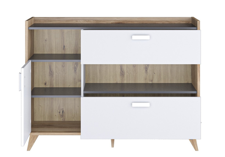 Komoda MOYA 1D2S dub castello/šedá/bílá