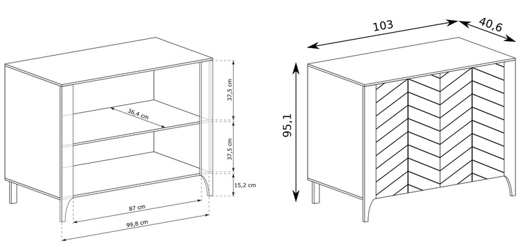 Komodu podepírají štíhlé nožky MDF o výšce 15 cm, které