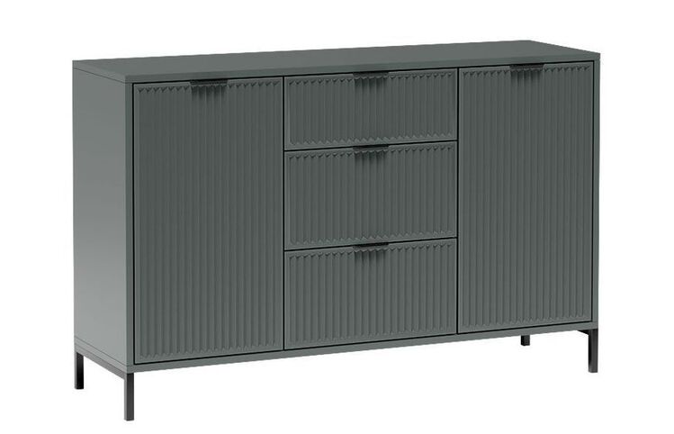Moderní komoda se 2 dvířky a 3 prostornými zásuvkami, což z ní činí velmi praktický kus nábytku.