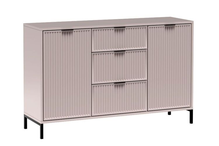 Moderní komoda se 2 dvířky a 3 prostornými zásuvkami, což z ní činí velmi praktický kus nábytku.