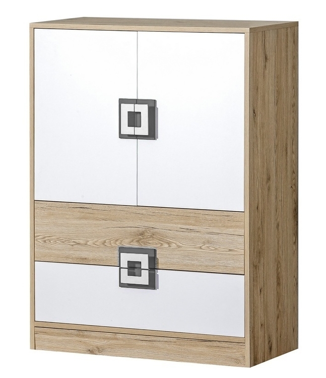 Komoda NIKO ze sektorové řady, která se vyznačuje netradičním zpracováním barev a originalitou úchytů. Tento styl nábytku zaujme každou mladší generaci. Komoda je vyrobena z kvalitní LTD desky hraněné ABS lištou. Korpus je v barvě dub jasný, dveře jsou v kombinaci barev bílá mat / dub jasný. Úchytky jsou v barevné kombinaci popel / bílá. Uvnitř komody je police a 2 zásuvky ve spodní části. Sektorový nábytek NIKO má široký výběr prvků, který Vám zaručí sestavit si dětský nebo studentský pokoj, ložnici či kancelář podle svých potřeb, přání a představ. Dodáváme v demontovaném stavu.CASA 23004