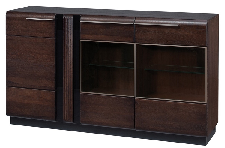 Komoda ze sektorové řady PORTI značkového výrobce Szynaka. Komoda má 3 dvířka, z toho 2 prosklené. Systém PORTI je exkluzivní kolekce navržena v moderním duchu. Struktura ušlechtilého masivního dubu na přední straně a přírodní dýha na korpusu zdůrazňuje velmi klasickou barvu čokoládový dub.... více informací o zboží