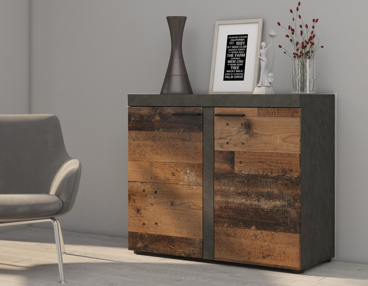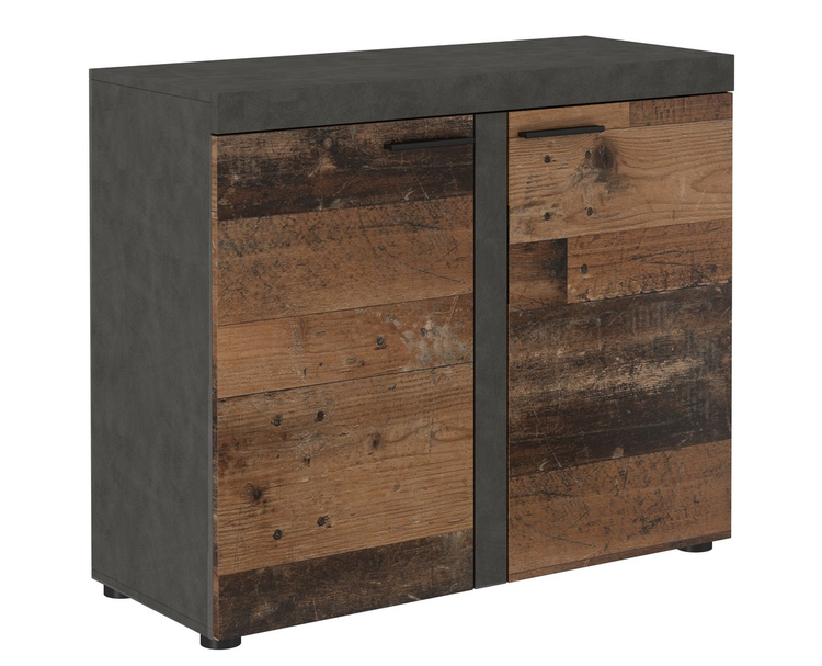 Komoda dvoudveřová v moderním provedení. Korpus je vyroben z kvalitního lamina v barvě matera (černošedá),dvířka jsou vyrobena v barvě dub old style. Úchyty jsou plastové černé. Dodáváme v demontovaném stavu.CASA 87008