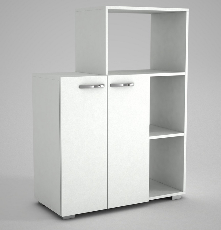 Komoda s regálem je vyrobena z kvalitního lamina o tl.18 mm hraněné PVC páskou, odolného proti poškrábání v barvě matná bílá. Dodáváme v demontovaném stavu.CASA 28056