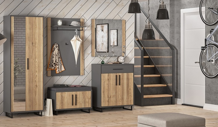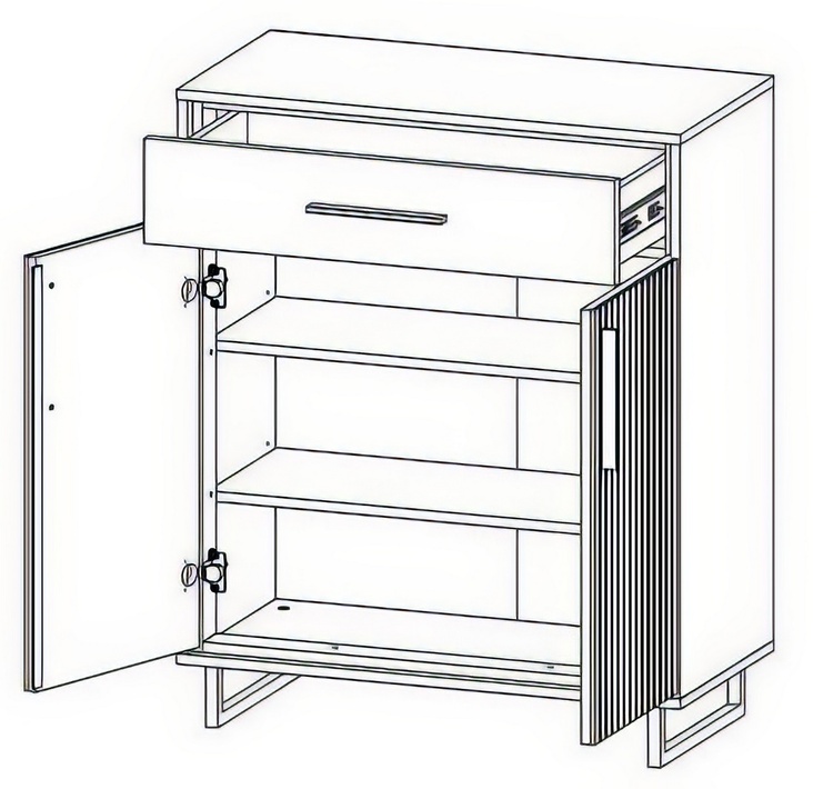 Komoda dvoudveřová se zásuvkou v industriálním stylu je vyrobena z LTD desky, korpus je v barvě šedé, přední část dvířek je doplněna lištami z přírodního dubového dřeva. Nohy jsou kovové černé. Nábytek disponuje teleskopickými pojezdy a systémem samodovíracích závěsů. Nabídka komponentů této sektorové řady umožňuje sestavit si nábytek dle vlastních představ. Dodáváme v demontovaném stavu.CASA 97060