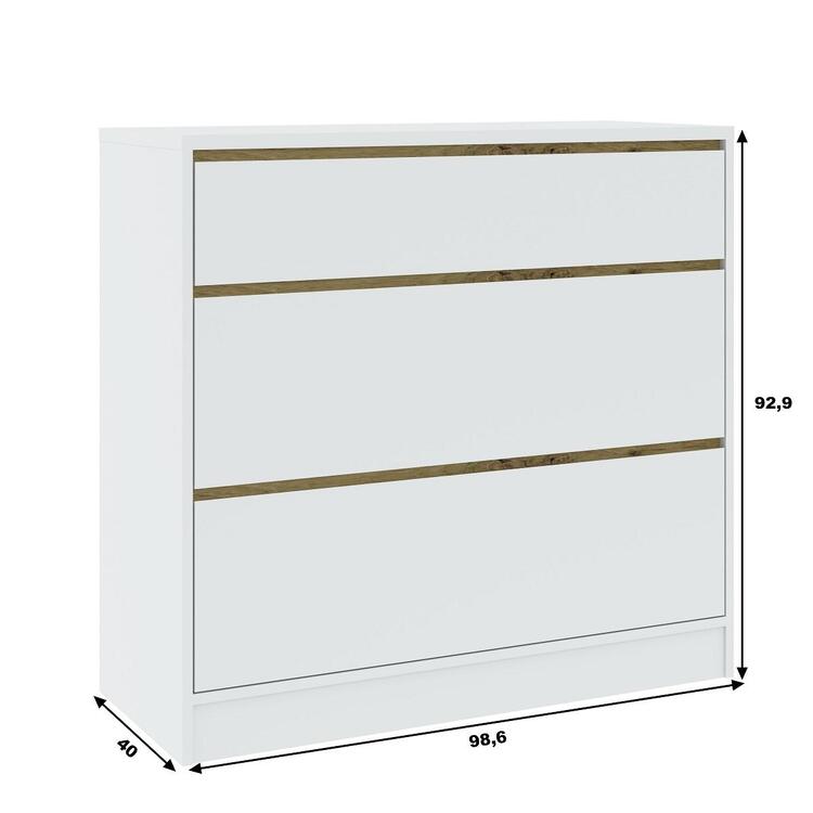 Komoda se třemi zásuvkami je vyrobena z kvalitní LTD v barevném provedení bílá/dub artisan. Dodáváme v demontovaném stavu.CASA 85019