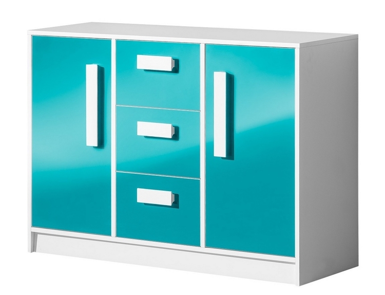 Široká komoda se třemi zásuvkami ve střední části ze sektorové řady GULLIWER, která se vyznačuje netradičním zpracováním barev a originalitou úchytů. Tento styl nábytku zaujme každou mladší generaci. Komoda je vyrobena z kvalitní LTD desky hraněné ABS lištou. Korpus je v barvě bílá mat, dveře jsou barvě tyrkysová lesk. Úchytky jsou v barvě bílé. Sektorový nábytek GULLIWER má široký výběr prvků, který Vám zaručí sestavit si dětský nebo studentský pokoj, ložnici či kancelář podle svých potřeb, přání a představ. Dodáváme v demontovaném stavu.CASA 23002