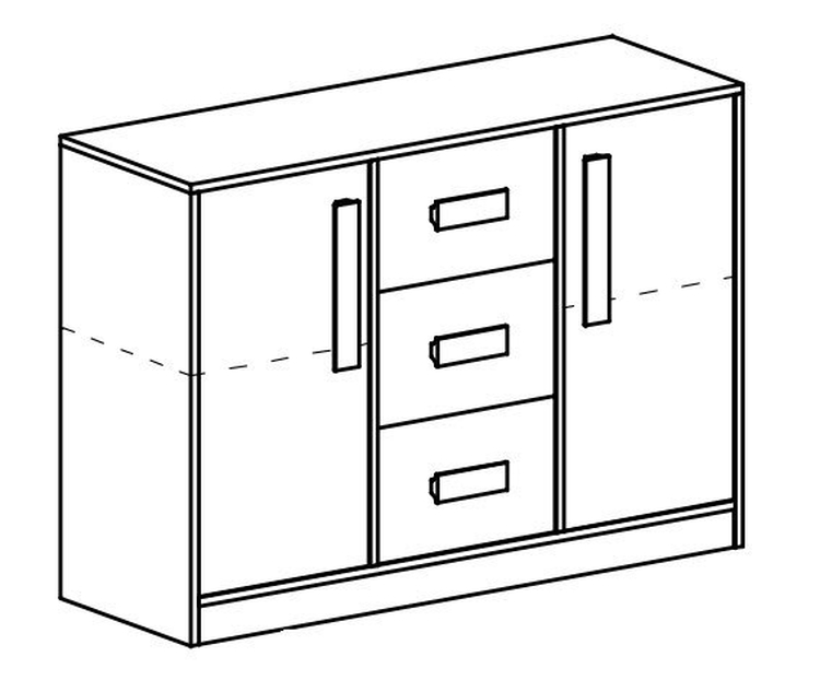 Široká komoda se třemi zásuvkami ve střední části ze sektorové řady GULLIWER, která se vyznačuje netradičním zpracováním barev a originalitou úchytů. Tento styl nábytku zaujme každou mladší generaci. Komoda je vyrobena z kvalitní LTD desky hraněné ABS lištou. Korpus je v barvě bílá mat, dveře... více informací o zboží