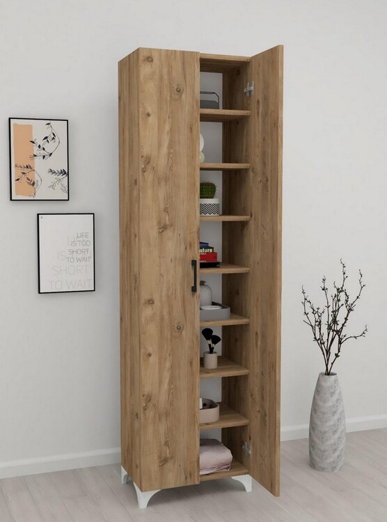 Dvoudveřová vysoká komoda je vyrobena z kvalitní LTD desky, která je nenáročná na údržbu. Tloušťka desky – 18 mm. Uvnitř komody jsou police. Barevné provedení je borovice. Dodáváme v demontovaném stavu.CASA 36036