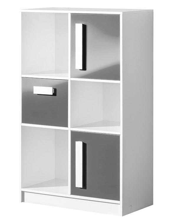 Vysoká komoda s policemi a zásuvkou ze sektorové řady GULLIWER, která se vyznačuje netradičním zpracováním barev a originalitou úchytů. Tento styl nábytku zaujme každou mladší generaci. Komoda je vyrobena z kvalitní LTD desky hraněné ABS lištou. Korpus je v barvě bílá mat, dveře jsou barvě šedá lesk. Úchytky jsou v barvě bílé. Sektorový nábytek GULLIWER má široký výběr prvků, který Vám zaručí sestavit si dětský nebo studentský pokoj, ložnici či kancelář podle svých potřeb, přání a představ. Dodáváme v demontovaném stavu.CASA 23002