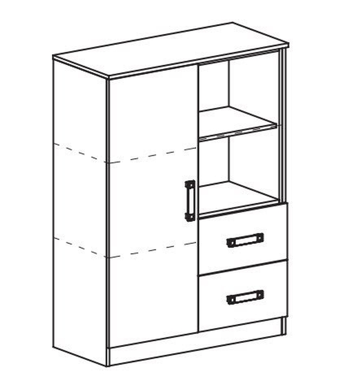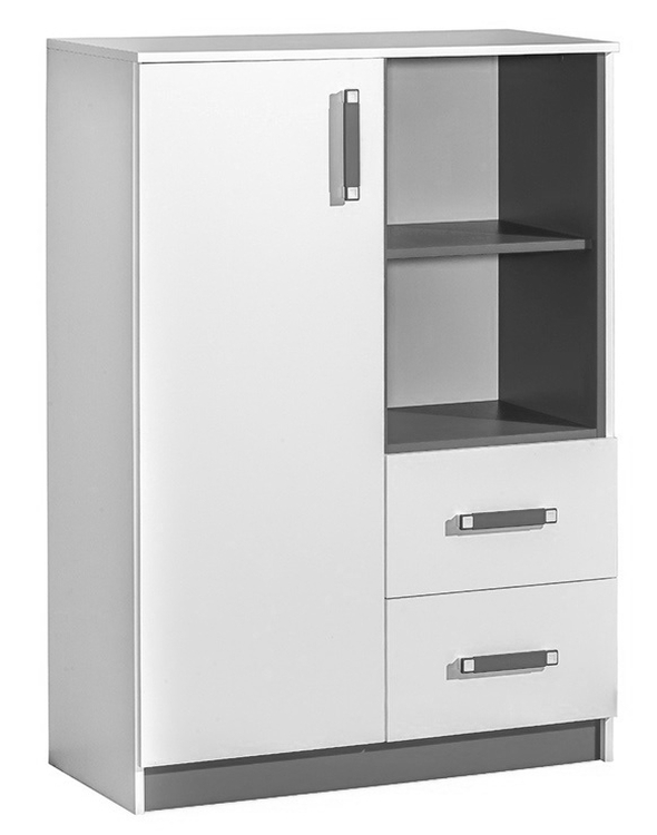 Komoda TRAFICO ze sektorové řady, která se vyznačuje netradičním zpracováním barev a originalitou úchytů. Tento styl nábytku zaujme každou mladší generaci. Komoda je vyrobena z kvalitní LTD desky hraněné ABS lištou. Korpus i dveře jsou v bílé matné barvě, doplňková barva je popel. Úchytky jsou v barevné kombinaci popel/bílá. Uvnitř levé skříňky jsou 2 police, v pravé části je police a 2 zásuvky. Sektorový nábytek TRAFICO má široký výběr prvků, který Vám zaručí sestavit si dětský nebo studentský pokoj, ložnici či kancelář podle svých potřeb, přání a představ. Dodáváme v demontovaném stavu.CASA 23005