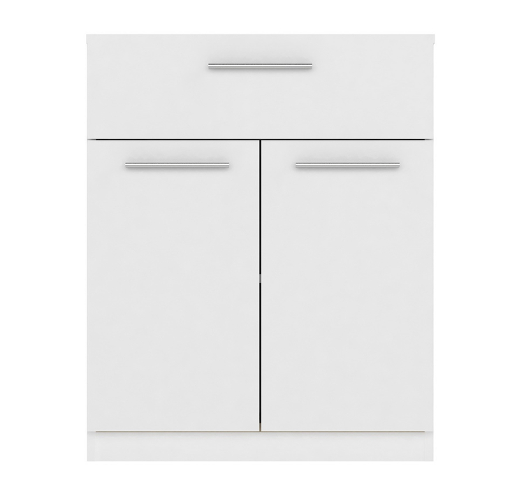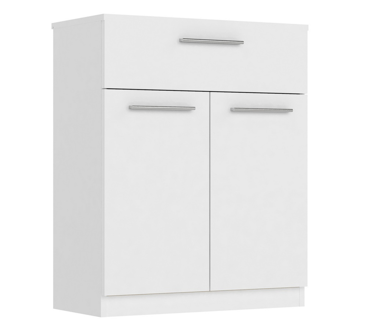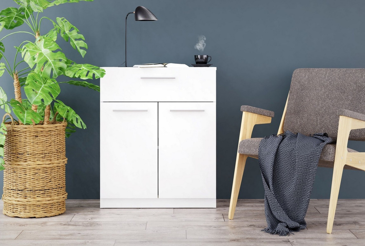 Dvoudveřová komoda se zásuvkou v moderním provedení. Korpus i dvířka jsou z kvalitní LTD (18 mm) v barvě matná bílá. Lamino je odolné vůči vysokým teplotám a poškrábání. Dodáváme v demontovaném stavu.CASA 85011