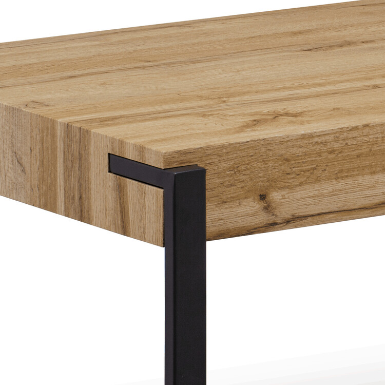Konferenční stolek značky Autronic přináší dokonalou kombinaci industriálního stylu a přírodního vzhledu. Hnědá deska v dekoru divokého dubu působí elegantně a zároveň útulně, zatímco černé kovové nohy zajišťují stabilitu a vizuální kontrast. Obdélníkový tvar desky nabízí dostatek prostoru pro dekorace, knihy či občerstvení. Díky modernímu designu a univerzálnímu provedení se skvěle hodí do obývacích pokojů laděných v loftovém či minimalistickém duchu. Stylový a funkční prvek pro každý interiér.