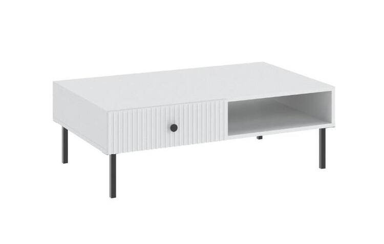 Konferenční stolek se dvěma zásuvkami v elegantním stylu, je vyroben z kvalitní LTD desky v barevném provedení bílá. Přední část nábytku je doplněna dekorem frézovaných dveří. Vysoké kovové nožky nábytku a úchyty jsou v barevném provedení černá. V naší nabídce naleznete více variant nábytku... více informací o zboží